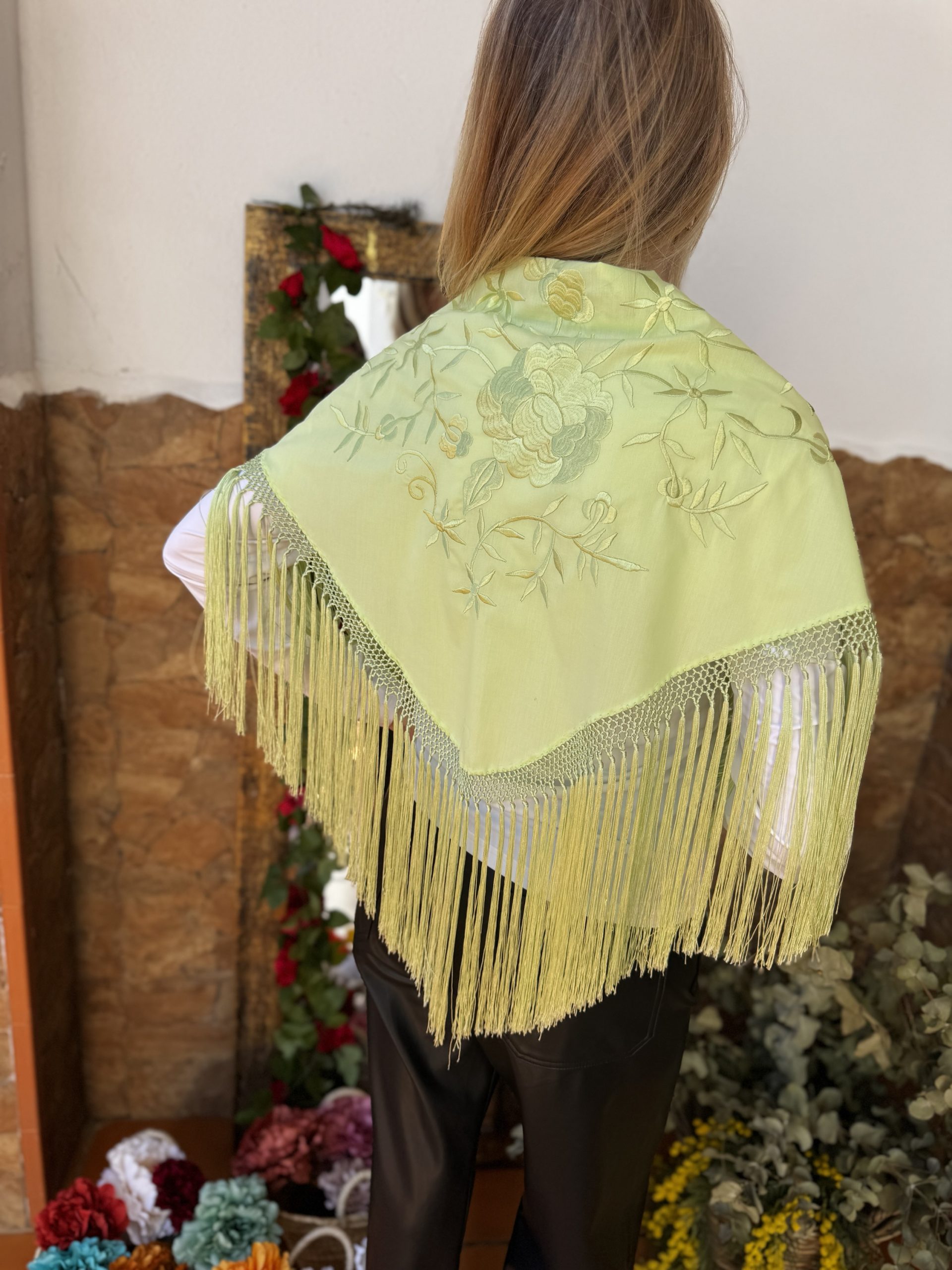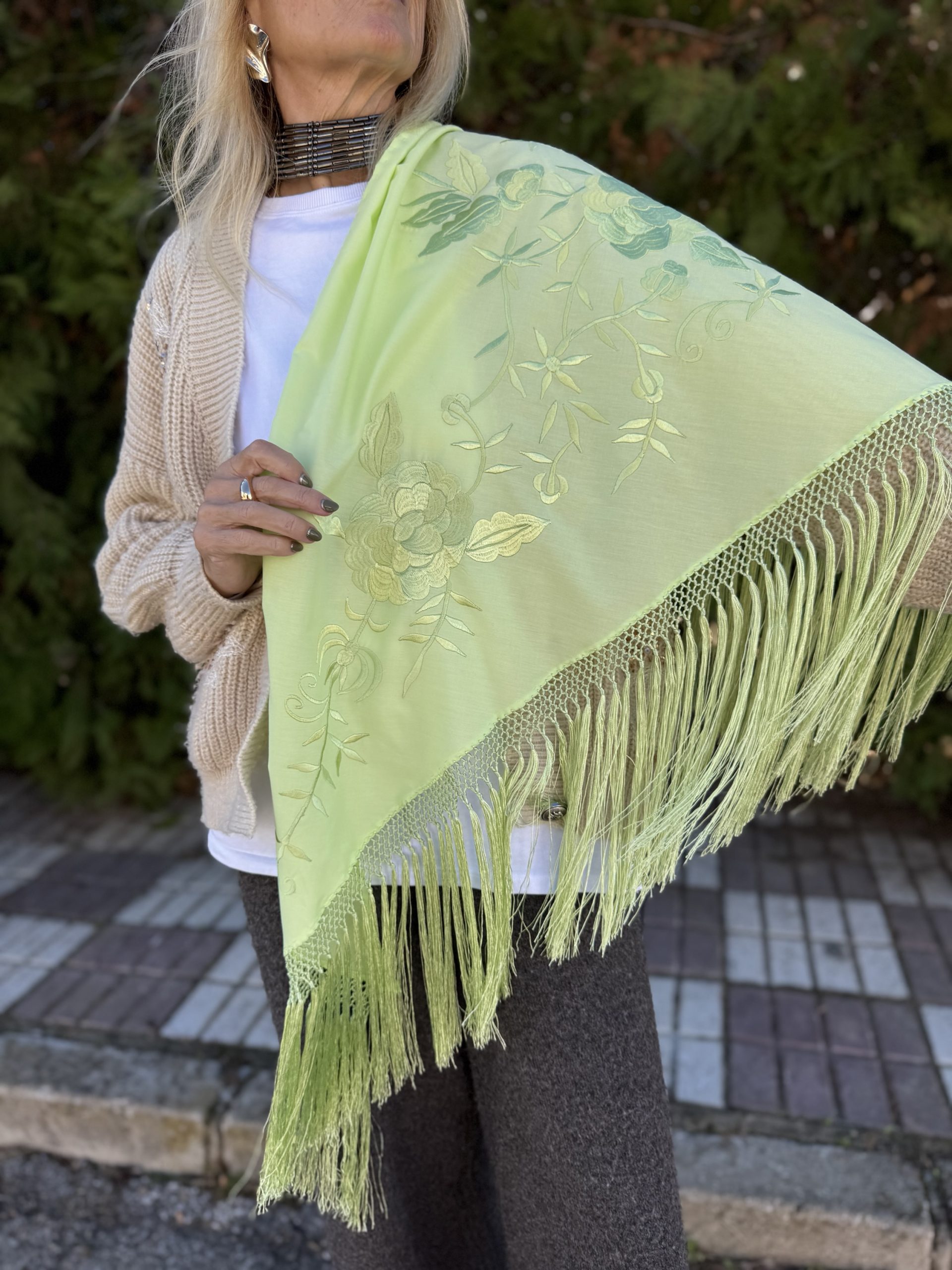 Mantón lima monocolor