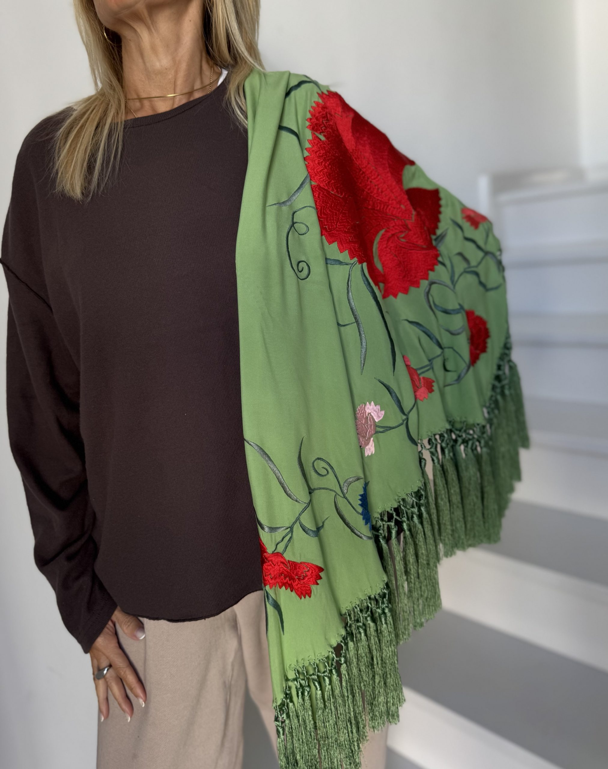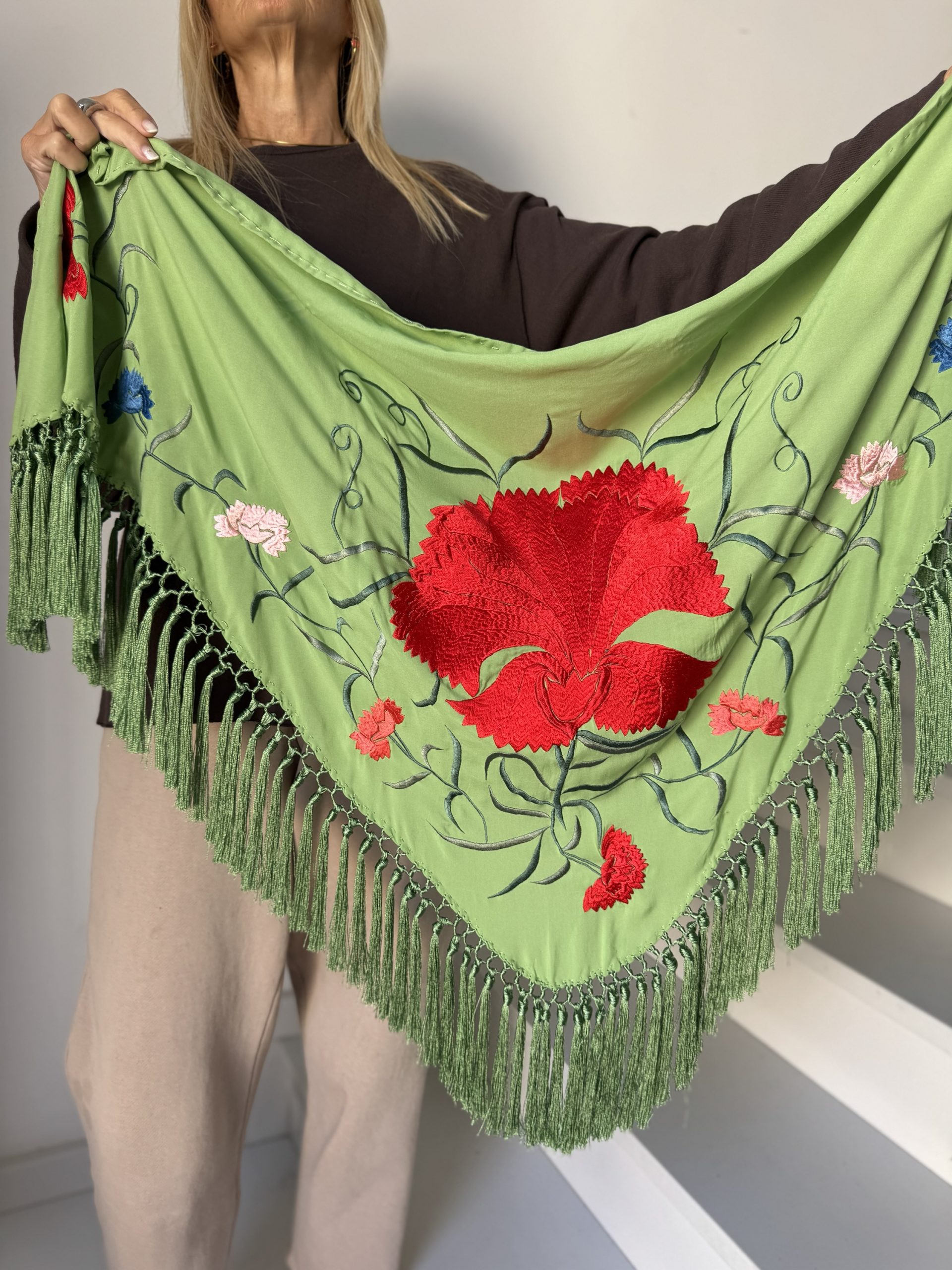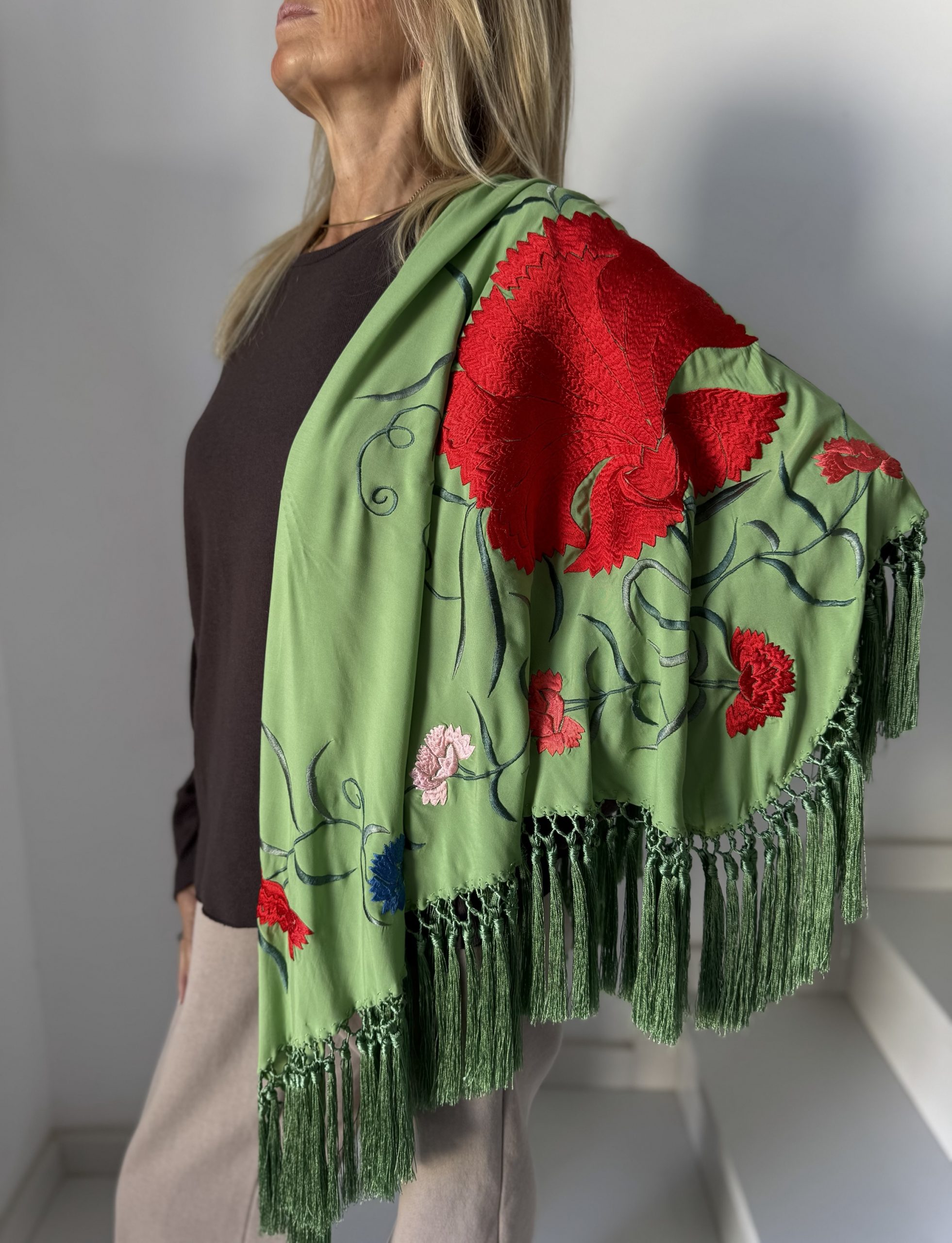 Mantón modelo clavellina verde manzana